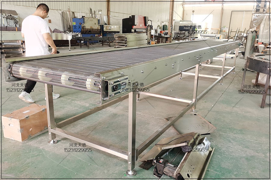 網(wǎng)帶輸送機(jī)在實(shí)際的生產(chǎn)應(yīng)用中,具有很多優(yōu)點(diǎn),它輸送量大,承重能力強(qiáng),適合整狀及散狀的物料輸送。并且網(wǎng)帶輸送機(jī)具有 結(jié)構(gòu)簡(jiǎn)單,運(yùn)行穩(wěn)定的特點(diǎn),在工業(yè)化生產(chǎn)的進(jìn)行中起著具足輕重的作用。網(wǎng)帶輸送機(jī)輸送量大,運(yùn)距長(zhǎng),對(duì)線(xiàn)路適應(yīng)性強(qiáng),可靠性高。