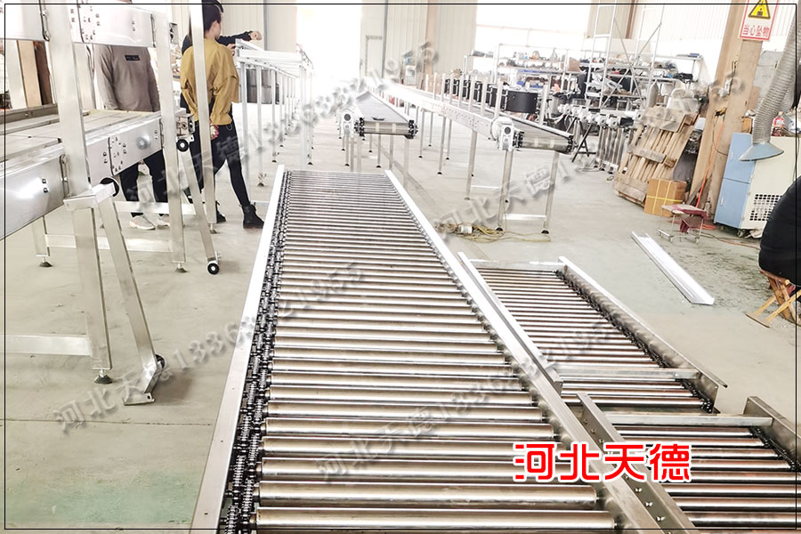 托盤輸送線滾筒輸送機的特點:物流滾筒輸送線之間易于聯(lián)接過濾,可用多條滾筒輸送線與其它輸送機組成雜亂的物流輸送體系,完結(jié)各方面的輸送需求。可選擇積放滾筒完結(jié) 物料的堆積運送。