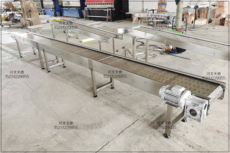 鏈板輸送機(jī)歡迎來電定制河北天德雞胸肉油炸流水線鏈板輸送機(jī):15231229955 網(wǎng)址:http://yyyutai.com.cn/