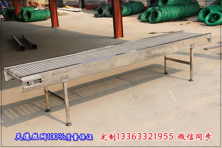 先為大家先來說下網(wǎng)帶輸送機:網(wǎng)帶輸送機采用不銹鋼網(wǎng)帶作為載體,不銹鋼輸送帶不僅可以耐高溫、而且清洗特別方便。在輸送過程中噪音小,適合輸送各種形狀大小不規(guī)則的物料,通常適合輸送輕型比較小的物料而且成本低。網(wǎng)帶輸送機用于食品的輸送、去濕、風干、冷凍、蒸煮線、熱處理、烘干及清洗行業(yè)中使用。通過選用不同的不銹鋼網(wǎng)帶可以制作成儲瓶臺、提升機、轉(zhuǎn)彎機、清洗機、烘干機以及冷瓶機等行業(yè)的專用流水線輸送設(shè)備,考慮到不銹鋼網(wǎng)帶的抗拉承受能力,輸送機的輸送長度通常不超過20米。