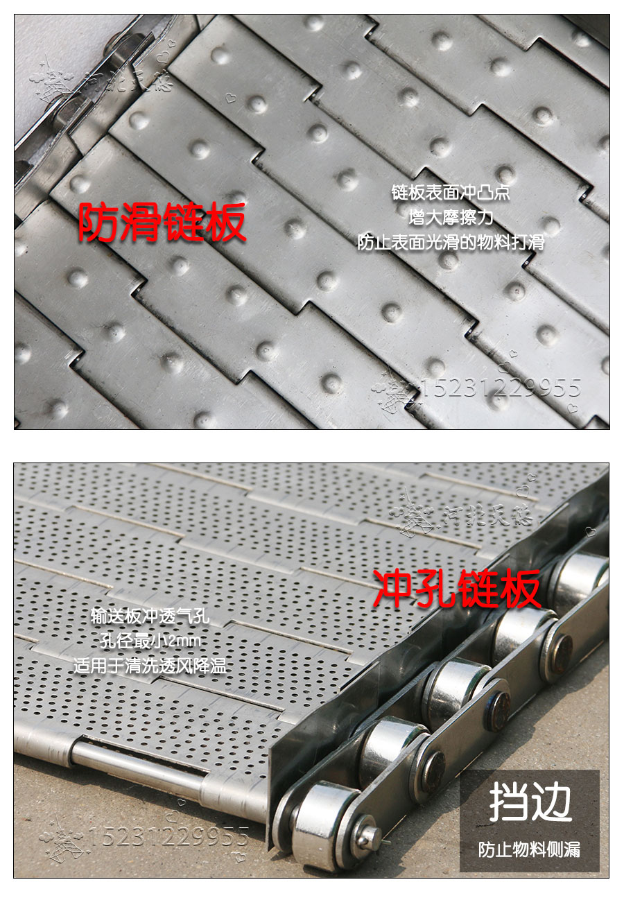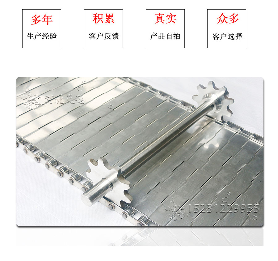 輸送鏈板非常堅(jiān)固由鏈條驅(qū)動(dòng)采用金屬板材生產(chǎn),適合用于輸送細(xì)小的高密度物件,輸送過程中運(yùn)轉(zhuǎn)平穩(wěn)安裝更換方便,成本相對較高使用壽命較長用于中等和大負(fù)荷輸送。鋼板彎曲形成合葉,使用支軸將合葉和鏈條串在一起。兩端的鏈條可以使用開口銷或者墊圈來固定,使用開口銷方便拆卸,維護(hù)方便。