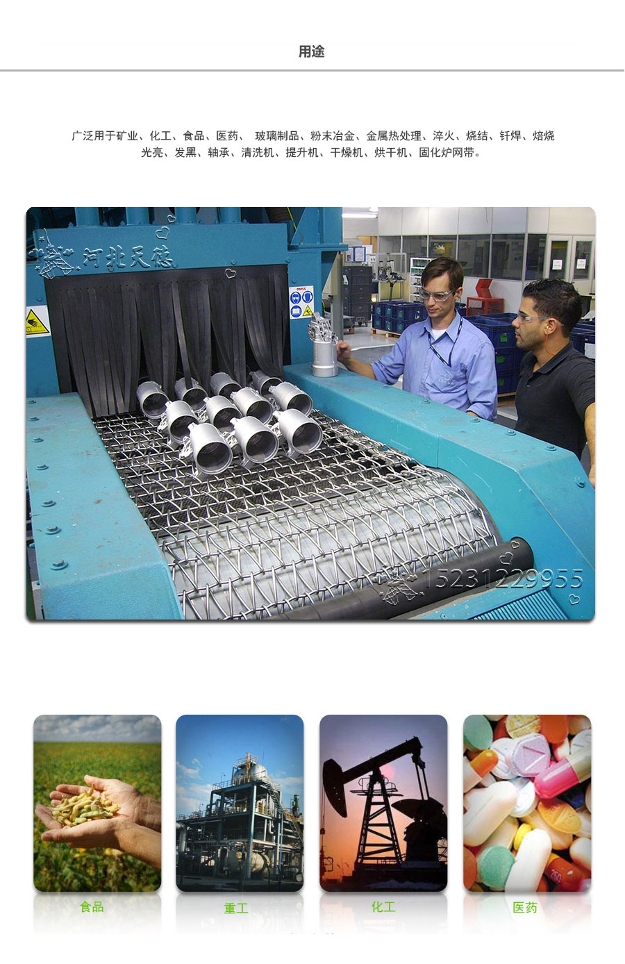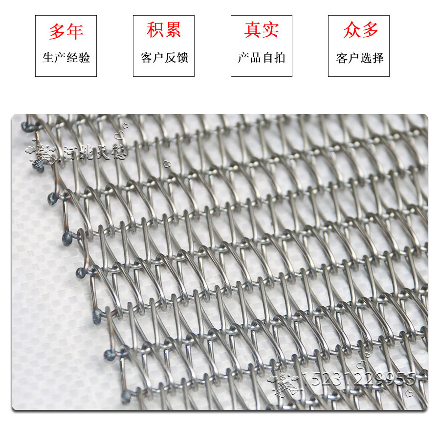 曲軸型:集中了金屬絲編織網(wǎng)帶的各種優(yōu)點,由于具有彎曲較深的串條,使各個螺旋盤條的位置正確的定位,因此減少網(wǎng)帶的變型和延伸。