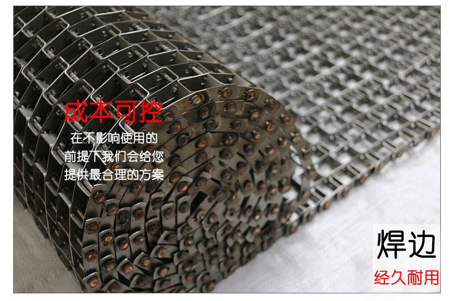 長城網(wǎng)帶材質(zhì):有A3低碳鋼、45#鋼、1Cr13耐熱鋼、 不銹鋼、304不銹鋼、1Cr18Ni9Ti不銹鋼、0Cr18Ni14NO2CU2耐熱耐酸鋼等