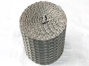 扁絲網(wǎng)帶是由軋扁鋼絲編織而成,可以用網(wǎng)帶輪驅動,其特點輸送平穩(wěn)不打滑。